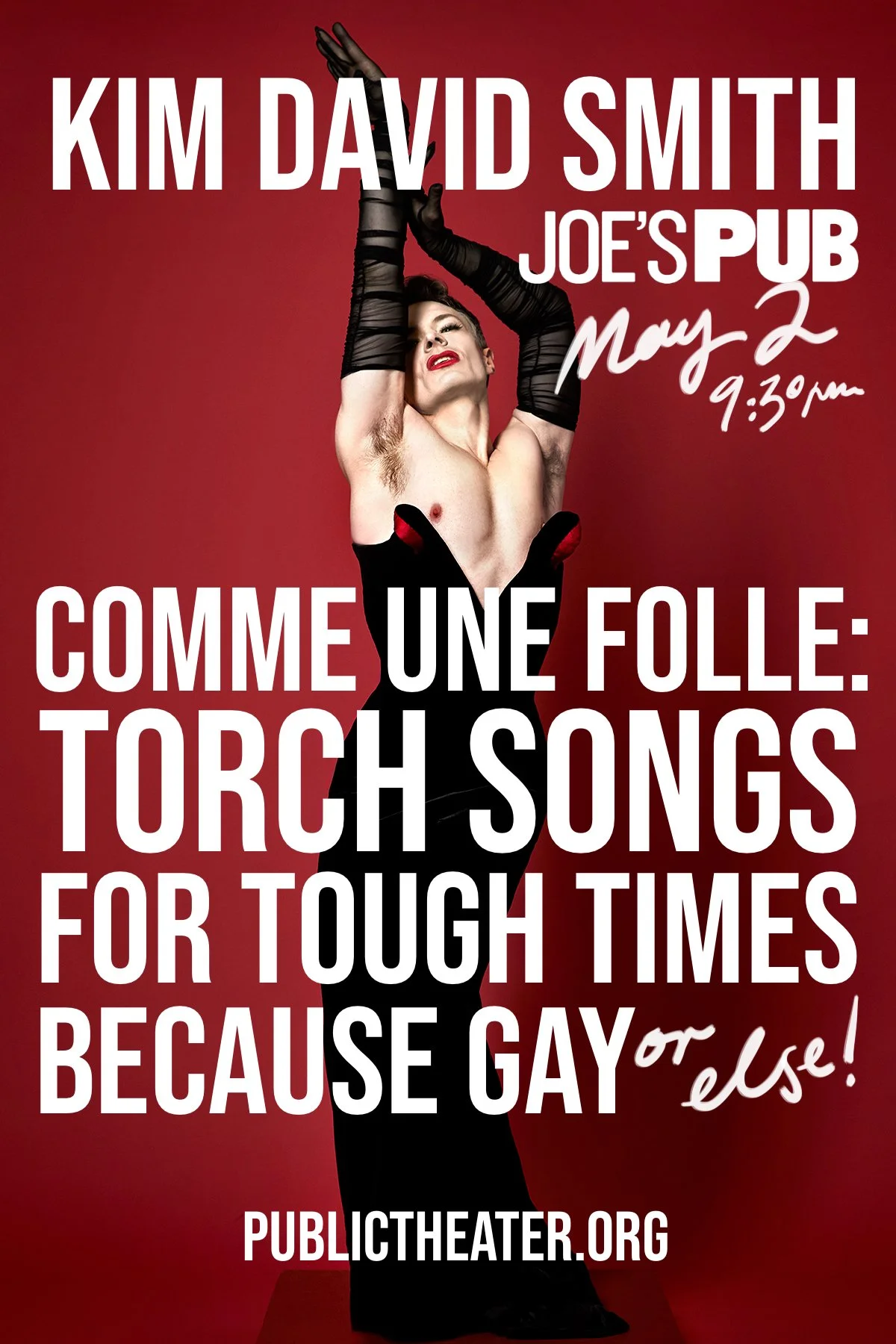 C’est magnifique! Described by Broadway World as the "David Bowie of cabaret," "slyly subversive" by The Wall Street Journal, and labeled the "male Marlene Dietrich" by The New York Times, Australian cabaret artist Kim David Smith returns to Joe's Pub with COMME UNE FOLLE: TORCH SONGS FOR TOUGH TIMES BECAUSE GAY (or else!); Saturday, May 2 (9:30pm)!