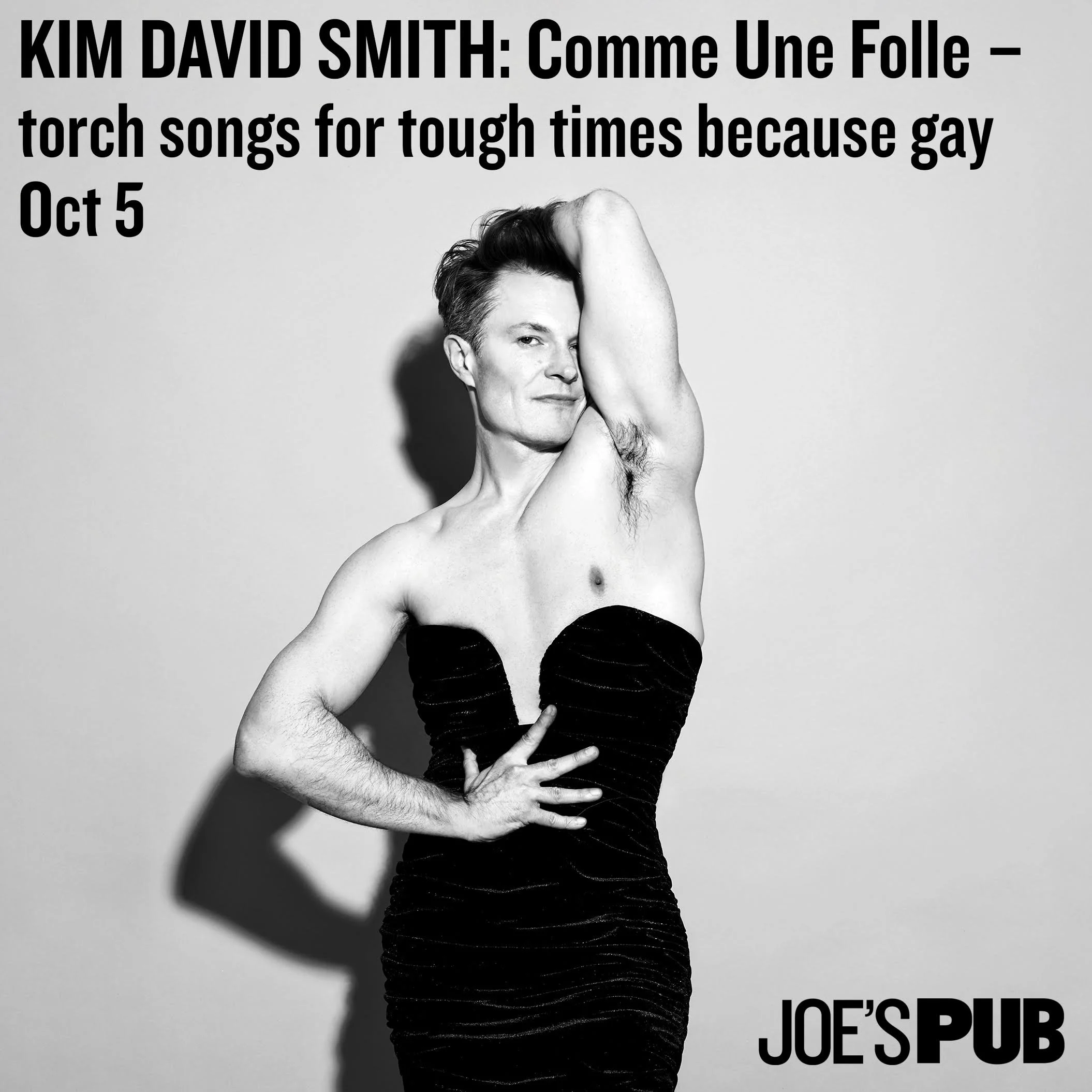 Described by Broadway World as the "David Bowie of cabaret," "slyly subversive" by the Wall Street Journal, and labeled the "male Marlene Dietrich" by the New York Times, Kim David Smith, hailing from Australia, is a Helpmann Award nominated actor and cabaret artist, based in New York City. Smith’s debut live album “Kim David Smith Live at Joe’s Pub” received a 2022 Bistro Award, and is available to stream or download via iTunes, Amazon, and Spotify.